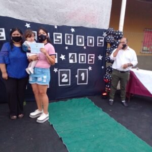 El acto fue muy emotivo por la situación de la pandemia, que no posibilito las clases presenciales y que se llevó a la Directora de este establecimiento la Directora Alicia Nadal, la que fue recordada con mucha emoción, ante la presencia de sus familiares directos.