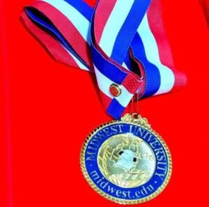 la Medalla y Placa al Liderazgo Global de la Midwest University (EE.UU.), en reconocimiento al trabajo que está realizando desde José C. Paz para fortalecer la Educación