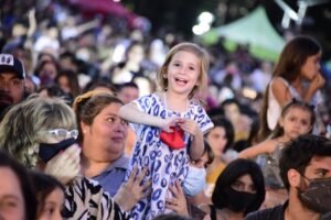 Las gradas comenzaron a poblarse desde temprano y pasadas las 19 h del domingo, comenzó la fiesta con todo el color. «Venimos de años de pandemia, con mucha angustia, mucha gente tuvo la pérdida de familiares y gente cercana y hoy, gracias a Dios, podemos brindarles estos espacios a las familias para que puedan disfrutar, estar felices con sus niños y niñas compartiendo lindos momentos. De eso se trata la gestión que venimos llevando adelante junto a Leo (Nardini)», indicó la intendenta interina, Noe Correa.