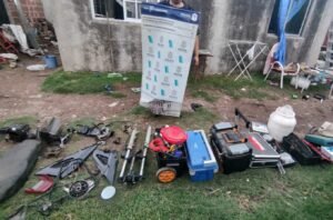 En el segundo punto, ubicado en la calle Navier al 400, se incautaron 18 cartuchos calibre 28 y tres plantas de marihuana con un pesaje total de 3.5 kg. El tercer allanamiento, se realizó en la calle Olivos entre Madame Curie y Pasco. En ese punto, se secuestró una motocicleta TVS con pedido de secuestro activo desde enero de 2024. Y en el último lugar indicado por la investigación, ubicado entre la calle Stephenson y Storni, se encontraron autopartes de varios vehículos, una chapa patente con pedido de secuestro y una carabina sin numeración.