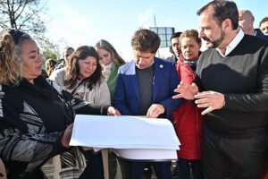 A su vez, recorrieron la construcción de 72 viviendas en el barrio La Chechela, un proyecto que cuenta con una inversión superior a los $600 millones de pesos, y permitirá que vecinos y vecinas accedan a su primera vivienda a un precio indexado a sus ingresos salariales, con cuotas a 30 años que se abonan al Instituto de la Vivienda de Buenos Aires (IVBA). Además, supervisaron la obra del nuevo jardín de infantes de Carlos Pellegrini y Travi, en el mismo predio donde se encuentran la Escuela Primaria 1 y la Escuela Secundaria 21.